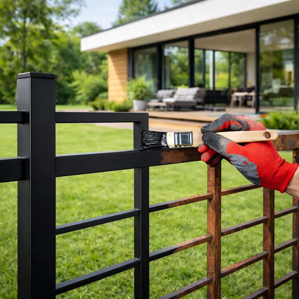 Rdza to efekt reakcji chemicznej pomiędzy żelazem, tlenem i wilgocią. Najczęściej pojawia się w miejscach narażonych na działanie deszczu, śniegu czy soli – na przykład na ogrodzeniach, bramach, balustradach czy metalowych meblach ogrodowych.